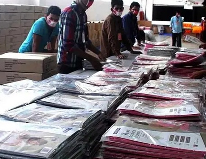 Finished garments are packed as per buyer specifications (single/multi-packs, ratio sets, barcoding) and sent to the dispatch unit.